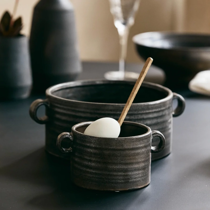Bowl features a simple design that fits most occasions. Whether you’re preparing the table for morning or evening, it will be an elegant addition to your table setting. The bowl has a modern and clean look with a matte glaze, giving it a sleek appearance. The bowl has two practical handles and is ideal for food storage or serving.Due to the glazing and high firing temperatures, variations will occur, making each product unique.