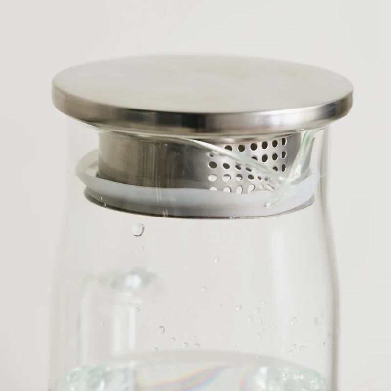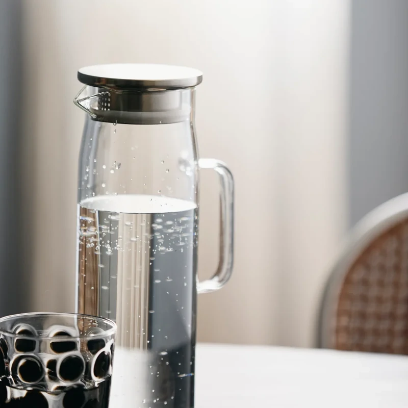 The transparent glass gives a light and airy look, while also allowing you to add citrus or other fruits, creating a pleasant and inviting atmosphere.