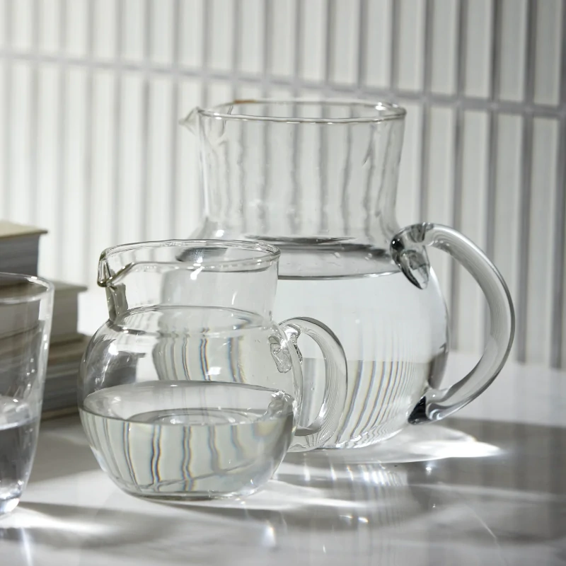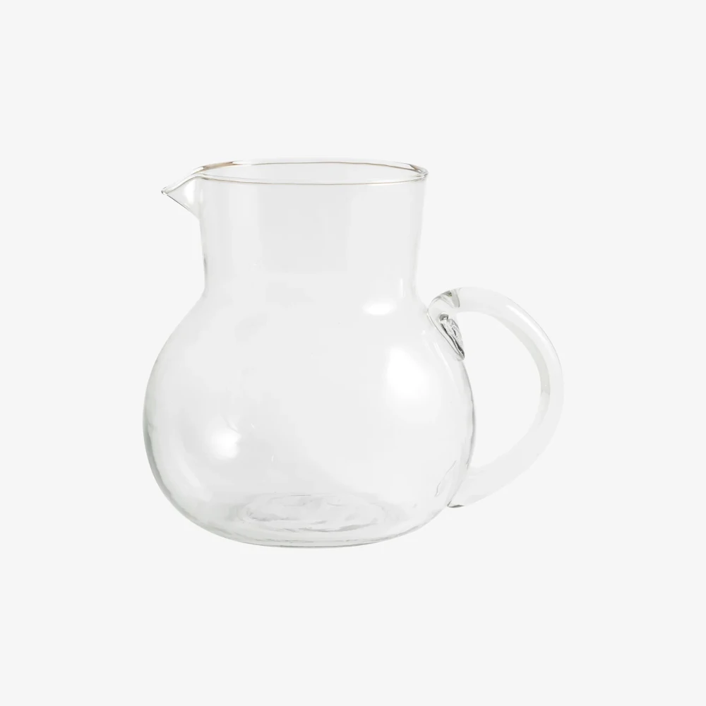Clear glass jug. With its beautiful shape and practical handle, this jug is a classic and safe choice. Elegant and functional, it will complement any table setting. Jug has a capacity of 1.2 liters.