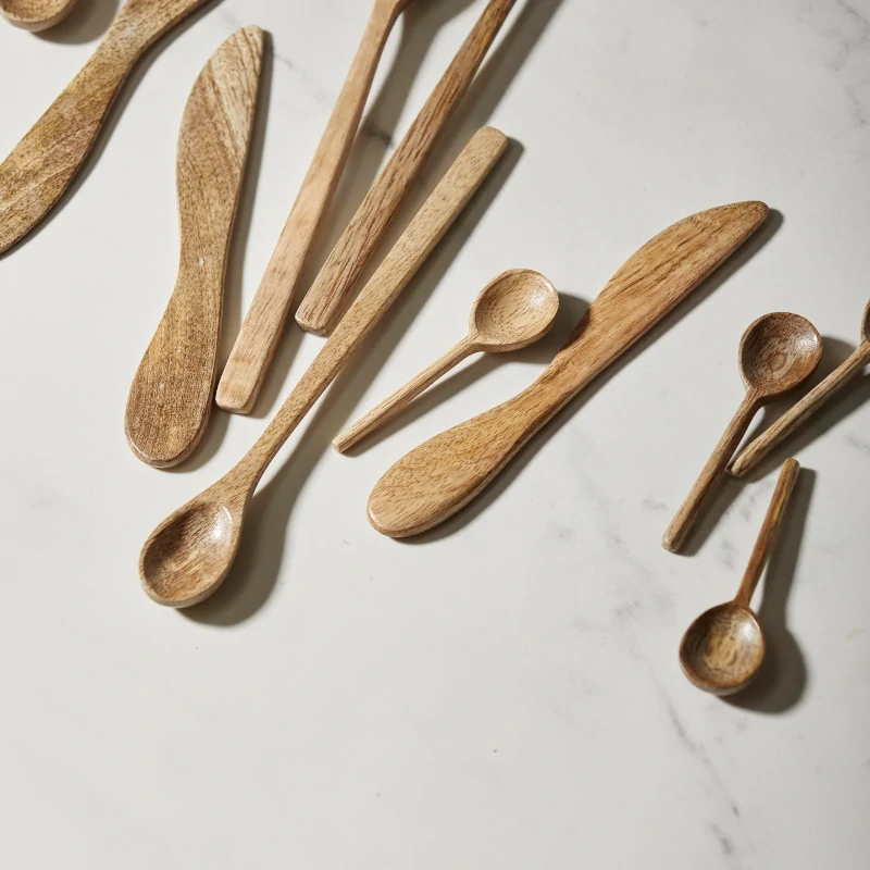 Spoon in mango wood with a short handle. Add a warm and natural element to your table. A light and simple spoon that is ideal for tapenades and spices. As mango wood is a natural material, there may be variations in appearance.